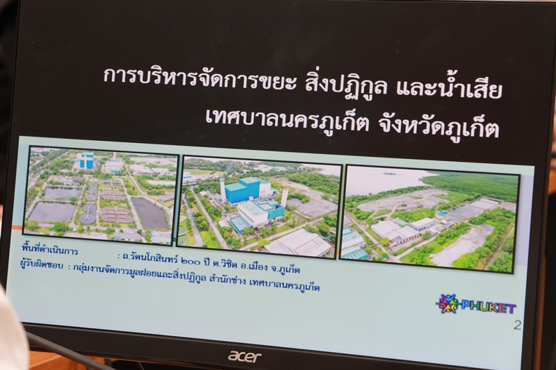 ทั้งนี้ นายศุภโชค ละอองเพชร นายกเทศมนตรีนครภูเก็ต ได้รายงานปัญหาอุปสรรค และสถานการณ์ปริมาณขยะมูลฝอยจากท้องถิ่นต่าง ๆ ในจังหวัดภูเก็ตที่ส่งเข้ามากำจัดยังศูนย์ฯ ประมาณ 1,200 – 1,300 ตัน / วัน สามารถนำเข้ากำจัดยังเตาเผา 500 ตัน / วัน ขยะส่วนเกินประมาณ 700 ตัน / วัน นำเข้ายังพื้นที่บ่อฝังกลบขยะ ขยะส่วนใหญ่ร้อยละ 60 คือ ขยะอินทรีย์ ส่งผลให้บางช่วงเวลาเกิดกลิ่นรบกวน โดยเจ้าหน้าที่ใช้วิธีการฉีดพ่นหัวเชื้อจุลินทรีย์ชนิดเข้มข้นวันล่ะ 3 รอบ