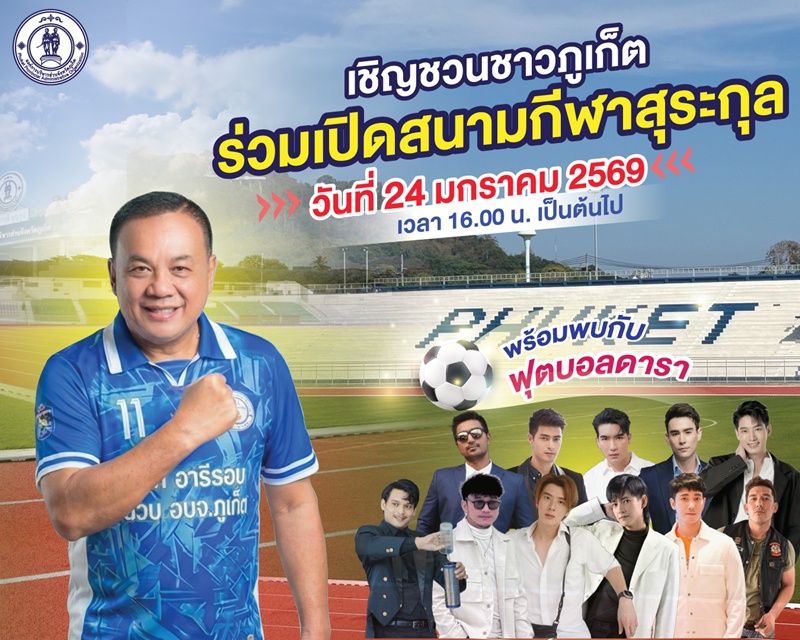 อบจ.ภูเก็ต ขอเชิญชวนพี่น้องชาวภูเก็ตทุกท่านร่วมเปิดใช้สนามกีฬาสุระกุลอย่างเป็นทางการ