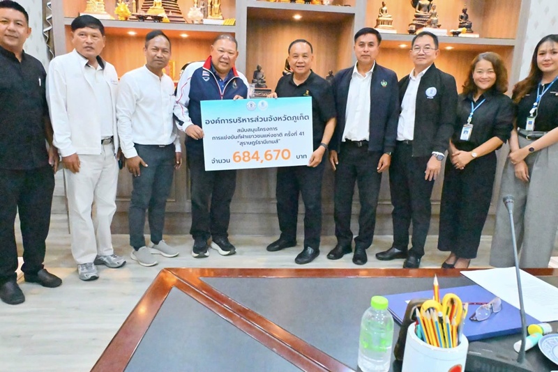 อบจ.ภูเก็ต ส่งมอบเงินสนับสนุนโครงการการแข่งขันกีฬาเยาวชนแห่งชาติ ครั้งที่ 41 “สุราษฎร์ธานีเกมส์”