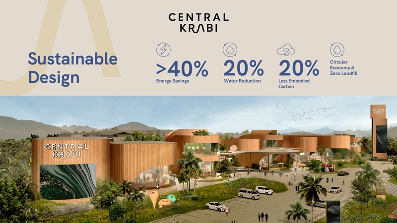 ดร.ณัฐกิตติ ตังพูลสินธนา กรรมการผู้จัดการใหญ่ สายงานการตลาด บุมจ. เซ็นทรัลพัฒนา กล่าวว่า “เซ็นทรัลกระบี่ จะเป็น ศูนย์การค้าแนวคิดความยั่งยืนแห่งแรกของไทย ที่มุ่งสู่การรับรองมาตรฐานสากล EDGE Certification – Zero Level โดยตั้งเป้าลด Carbon Footprint ตั้งแต่กระบวนการก่อสร้าง ซึ่งเป็นเทรนด์การพัฒนาศูนย์การค้าระดับโลกที่รองรับการใช้ชีวิตในอนาคต ทั้งนี้สอดคล้องกับวิสัยทัศน์ ‘Krabi Prototype’ ที่ทุกภาคส่วนร่วมกันผลักดันยกระดับจังหวัดกระบี่ให้เป็น ศูนย์กลางการท่องเที่ยวยั่งยืน (Sustainable Tourism) ที่สามารถทำได้จริงและเที่ยวได้จริง ผนวกกับศักยภาพของจังหวัดกระบี่ ที่โดดเด่นด้วยธรรมชาติอันงดงาม วัฒนธรรม และวิถีชีวิตผู้คนที่หลากหลายเชื้อชาติ ศาสนา ตลอดจนอาหารและศิลปะอันเป็นเอกลักษณ์ ทำให้กระบี่เป็นจุดหมายปลายทางที่แตกต่างและน่าจดจำ พร้อมต้อนรับนักท่องเที่ยวคุณภาพจากทั่วโลก เราจึงพัฒนาโครงการ เซ็นทรัล กระบี่ให้เดินไปในทิศทางเดียวกัน ภายใต้คอนเซ็ปต์ ‘Made by Krabi ที่เปิด พื้นที่ให้ชุมชนมีส่วนร่วมอย่างแท้จริง ถ่ายทอดอัตลักษณ์ท้องถิ่น และสะท้อนความต้องการของคนกระบี่ เพื่อสร้างความภาคภูมิใจร่วมกันและยกระดับเมืองสู่เวทีโลกอย่างยั่งยืน”