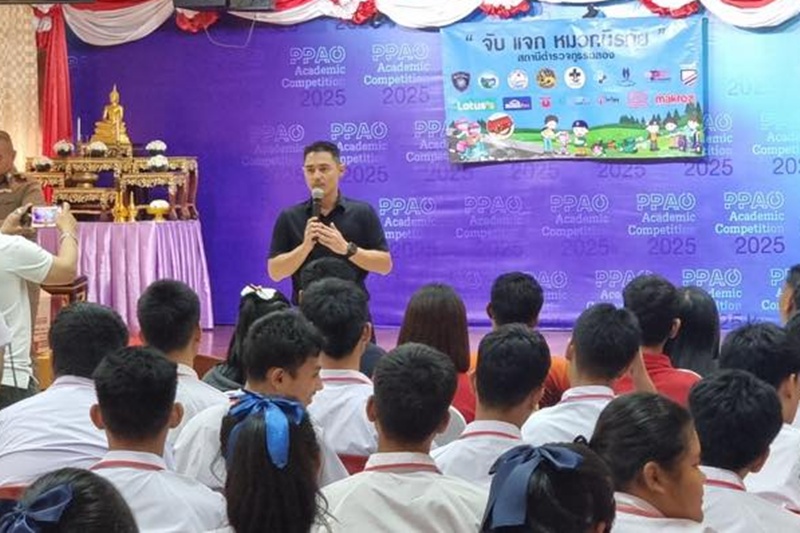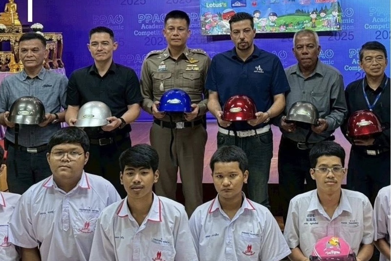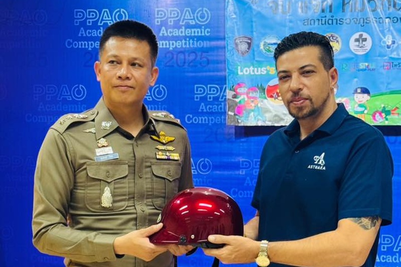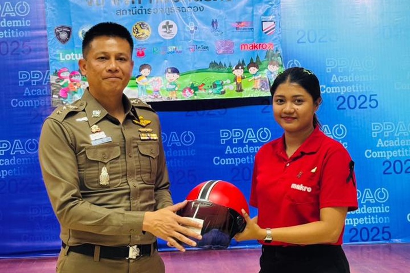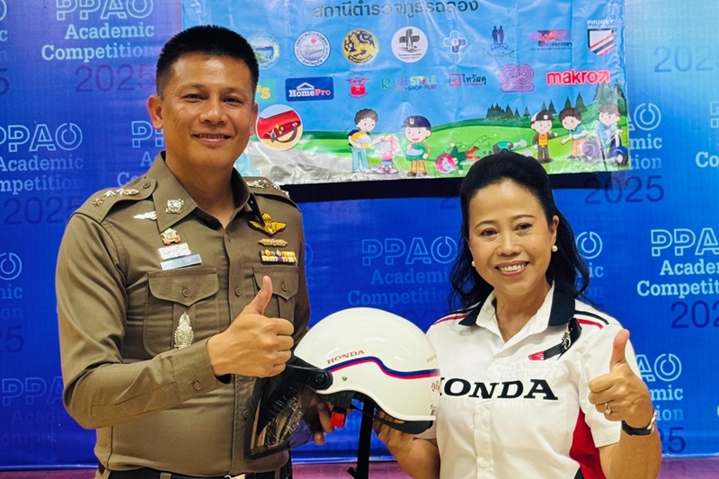 7 วันอันตราย “นายกเทมส์” ร่วมสภ.ฉลอง รพ.ฉลอง และภาคเอกชน เปิดโครงการ ”จับ แจก หมวกนิรภัย